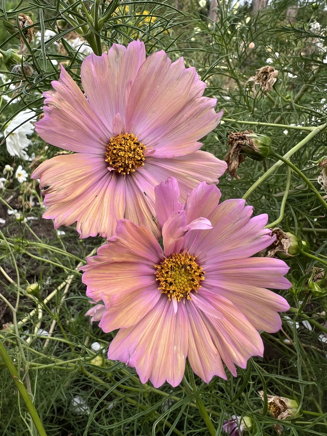 A variety that came out only in 2021. Quite different, We love the wonderful apricotta tones that look so different from many of the cosmos out there.